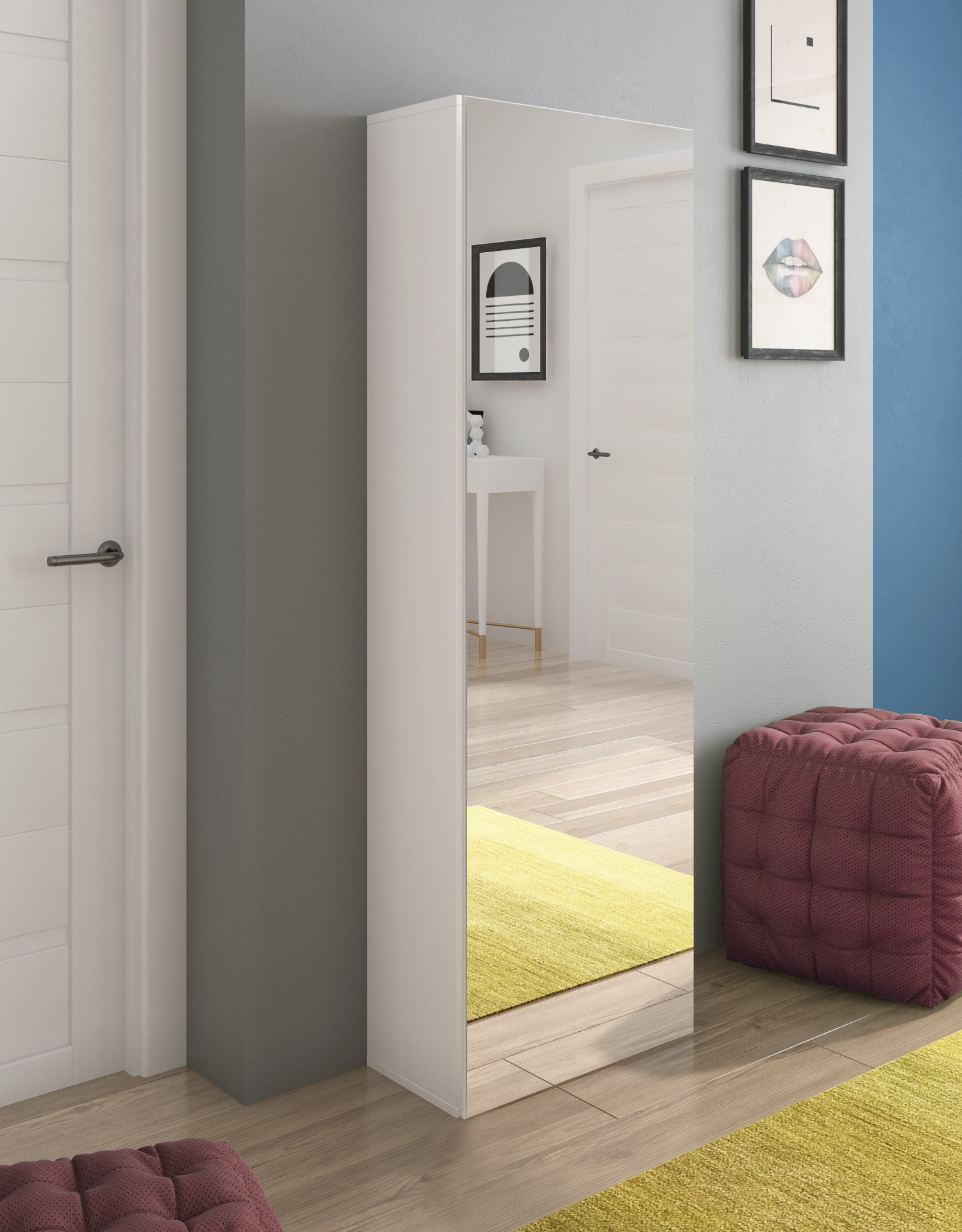 Dotata di un pratico specchio sull’anta frontale, ti consente di controllare il tuo outfit prima di uscire, aggiungendo funzionalità e design all’ingresso o alla camera da letto.