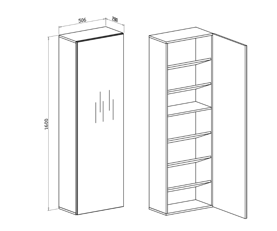 - Dimensioni: 160 x 52 x 23 cm (Altezza x larghezza x profondità)
